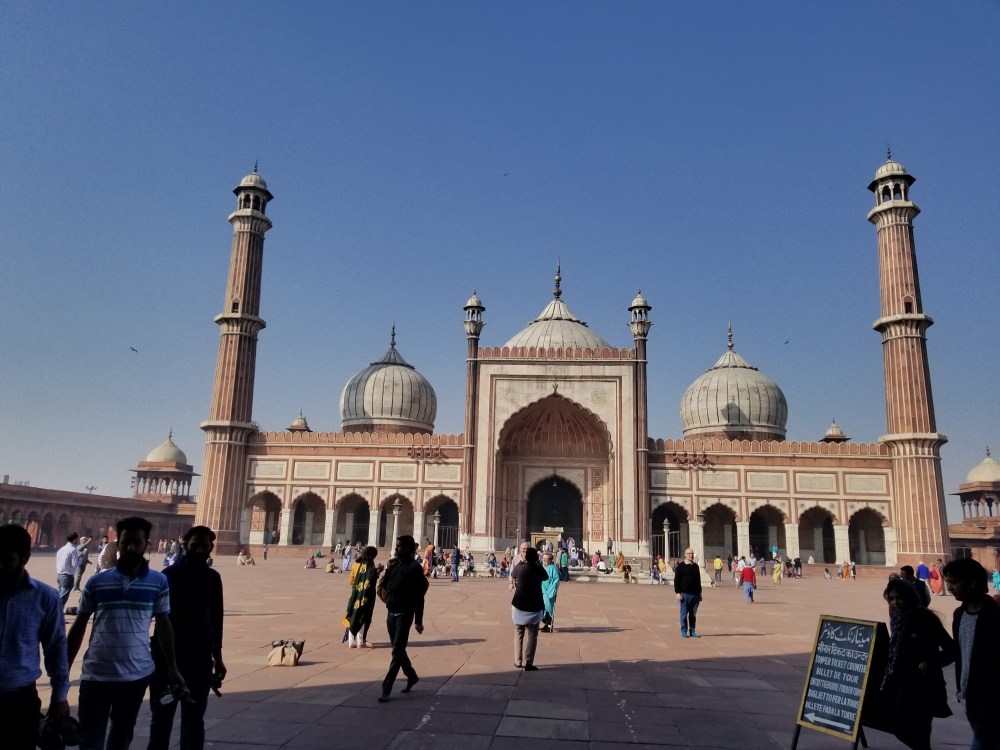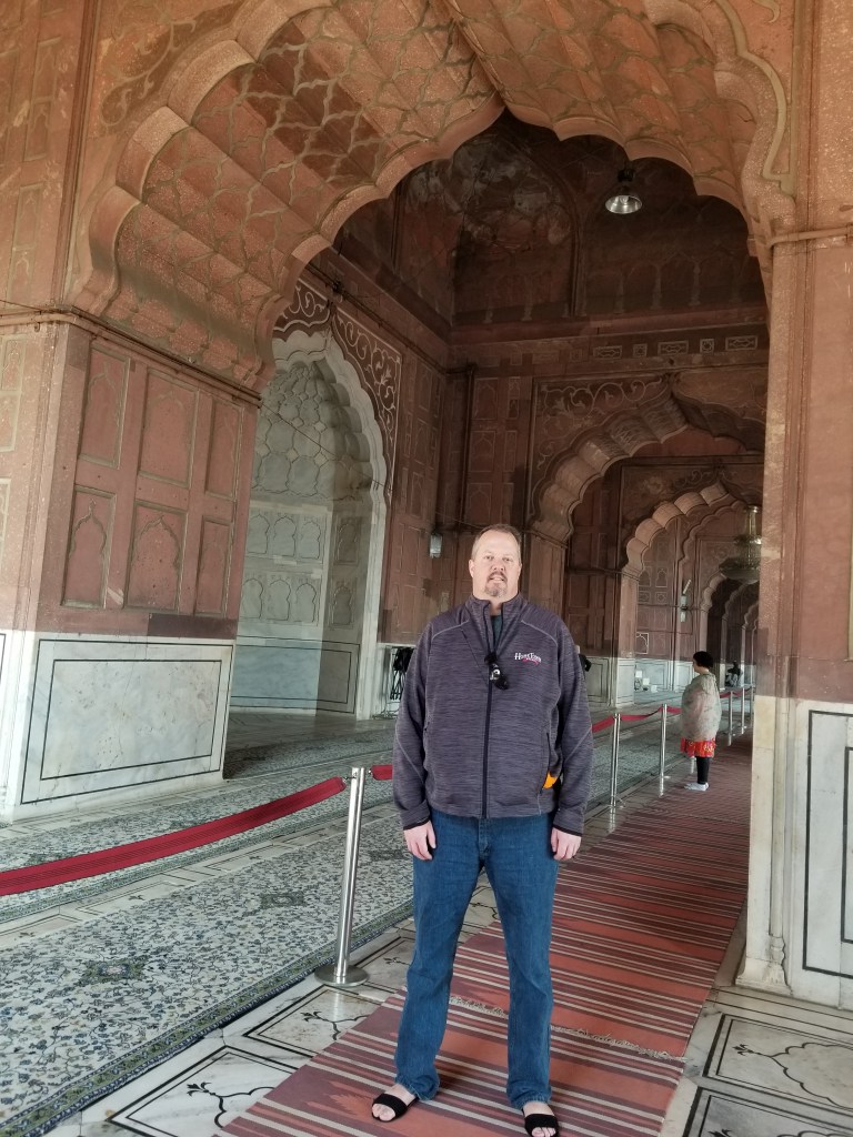 I’d been anticipating โฆ well, more like salivating over our first dayโs itinerary for weeksโฆboth a Sikh & Muslim temple . My first exposure to eitherโฆ EVER… and I was SO excitedโฆjust like a kid on Christmas morning! The Sikh house of worship in New Delhi was impressive, tall, clean, a large beautiful white marble building topped with a wide white tower that was crowned by a golden round cap. It had an expansive open courtyard of the same marble with grand steps leading down to a massive pool who’s water perfectly mirrored the temple in the morning sun. I knew of the Hindu & Muslim populations in India, but was completely ignorant of the Sikh religion and our agenda (which merely stated “visit”) completely understated what we were about to experience at Sri Bangla Sahib Gurudwara. The deeply moving impressive tour needs special attention and I will share how that exceptional morning unfolded in a separate blog post of its own “INSPIRATION #1- Sikh Temple Feeds Thousands Everyday”. Stay tuned….same trippin channel, same trippin station! **wink**wink** https://trippinwithnatalie.travel.blog/destinations/india/inspiration-1/