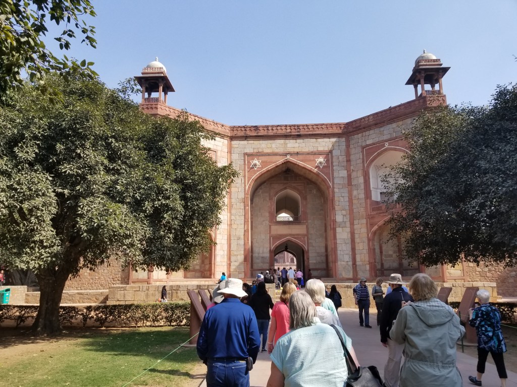 We returned to the Western Gate to get our shoes and walked down the dramatic steps that led into the fascinating Old Delhi busy market district of Chandri Chowk with it’s narrow side streets & alleyways filled with tiny shops selling spices, fruit, saris, silver & traditional Indian fare (essential oils, stationary, incense). There sat several bicycle powered rickshaws for hire … and soon we embarked on a crazy adventure. Look for my upcoming Wild Ride #1 Chandri Chowk Rickshaw Blog coming soon for details of the fun! https://atomic-temporary-168687877.wpcomstaging.com/destinations/india/wild-ride-1/ย
