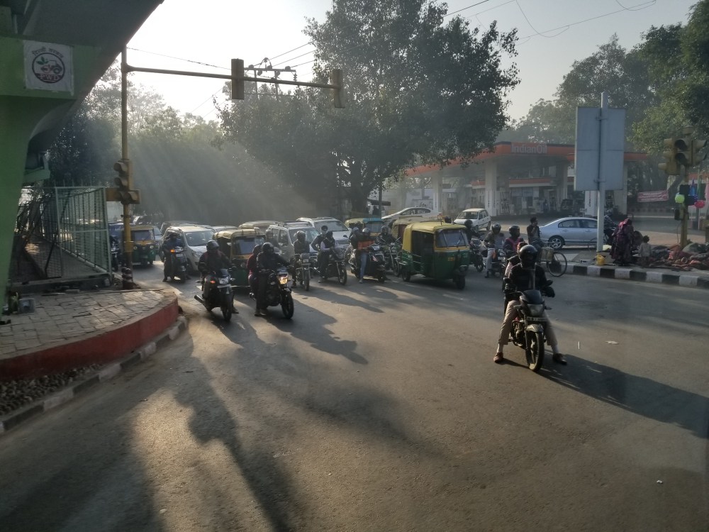 My first view of Delhi from the air was a smoky expanse of dim yellow lights & an unexpected dotting of random small campfires throughout the city of 28 million (small personal open fires on street corners for cooking & warmth I learned later are common in blighted areas of the city).