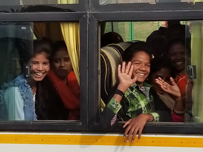 When we arrived, I was immediately struck with Jaipur’s warmth & friendliness. I couldn’t get enough of these adorable girls in a neighboring crowded bus…and, truth be told, I think they couldn’t get enough of me too! Our exchange went on for several blocks. If I smiled & waved from our bus window, it was always returned. Check out the sweet teenage schoolgirls giggling… shyly waving & these construction workers taking a minute to smile back at the goofy lady from Nebraska.