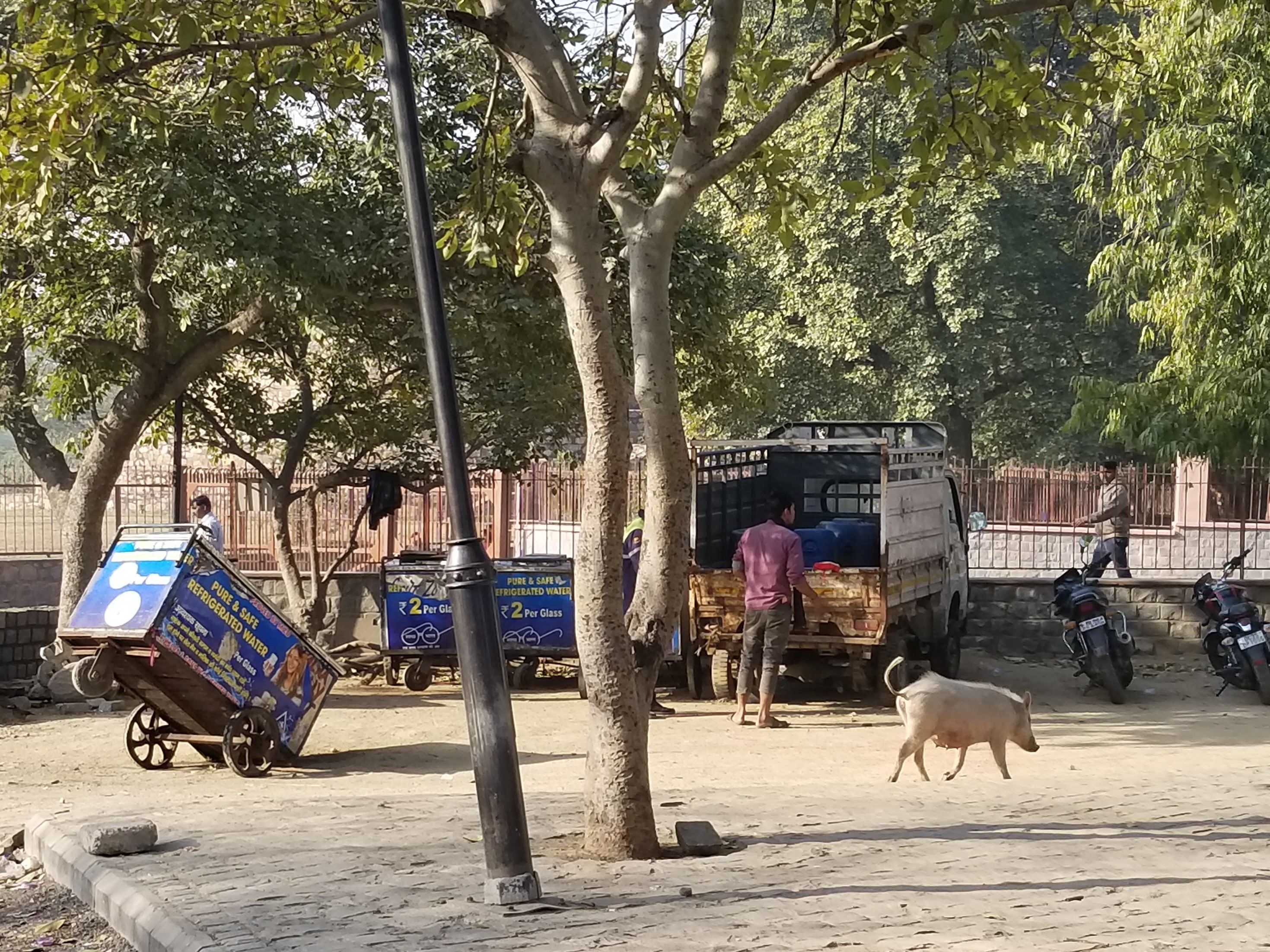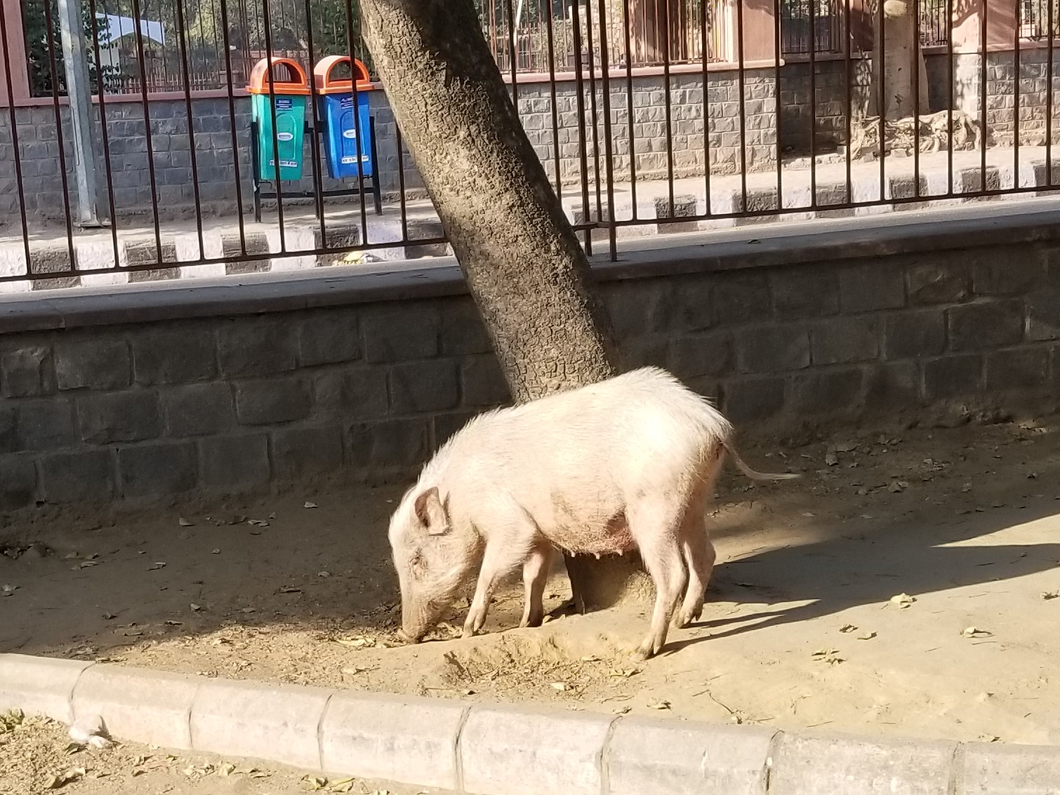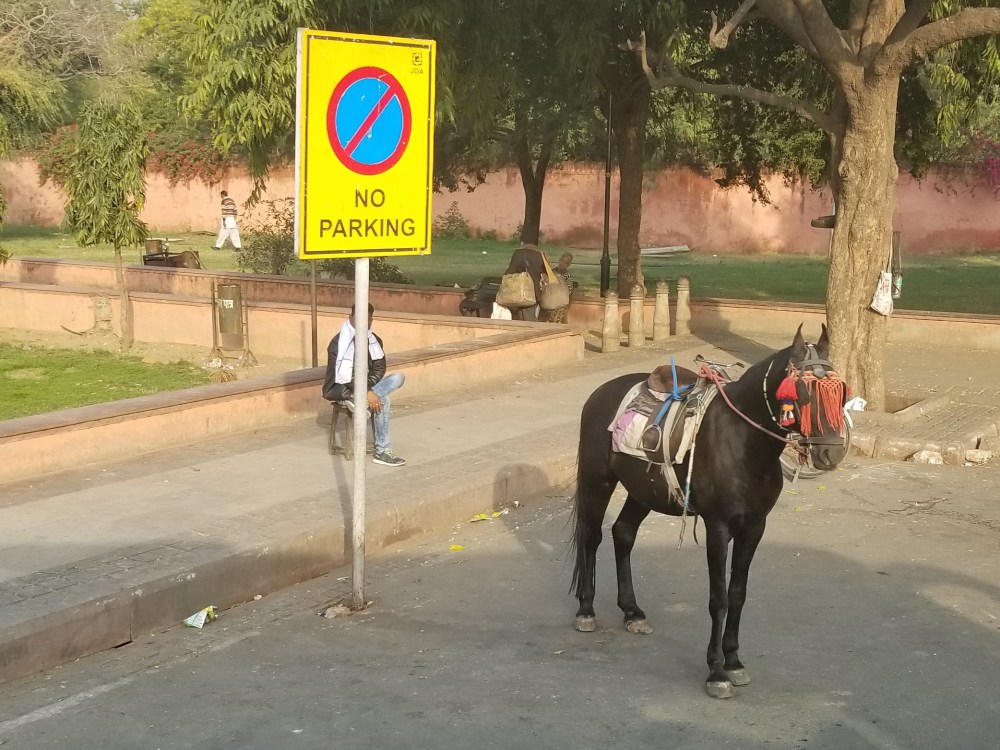 Our journey to explore India’s Golden Triangle moved southwest from the congestion of Delhi’s tan landscape thru the green fields of the Rajasthan countryside with crops of mustard seed & wheat. We had a scheduled short stop to view a 800 year old minaret, Qutub Minar, that apparently had some interesting history of being repeatedly struck by lightning & toppled by earthquakes yet I didn’t hear any of that from our guide due to the fact I became ridiculously obsessed with a rather large pink pig randomly hanging out in the parking lot. Oh, Natalie…