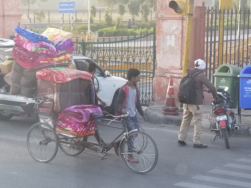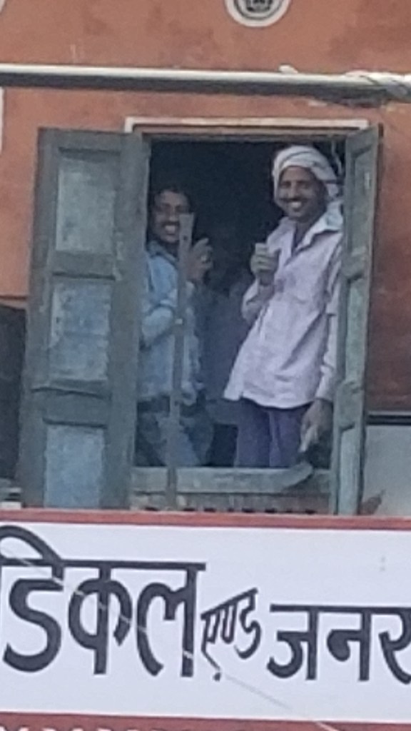 When we arrived, I was immediately struck with Jaipur’s warmth & friendliness. I couldn’t get enough of these adorable girls in a neighboring crowded bus…and, truth be told, I think they couldn’t get enough of me too! Our exchange went on for several blocks. If I smiled & waved from our bus window, it was always returned. Check out the sweet teenage schoolgirls giggling… shyly waving & these construction workers taking a minute to smile back at the goofy lady from Nebraska.