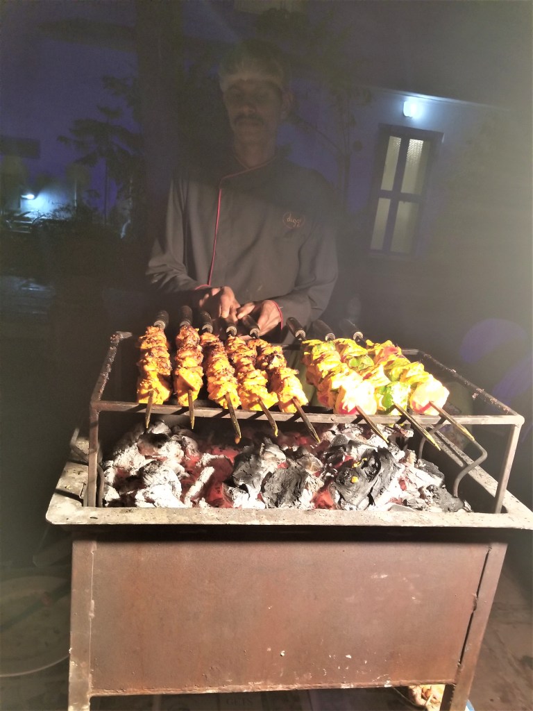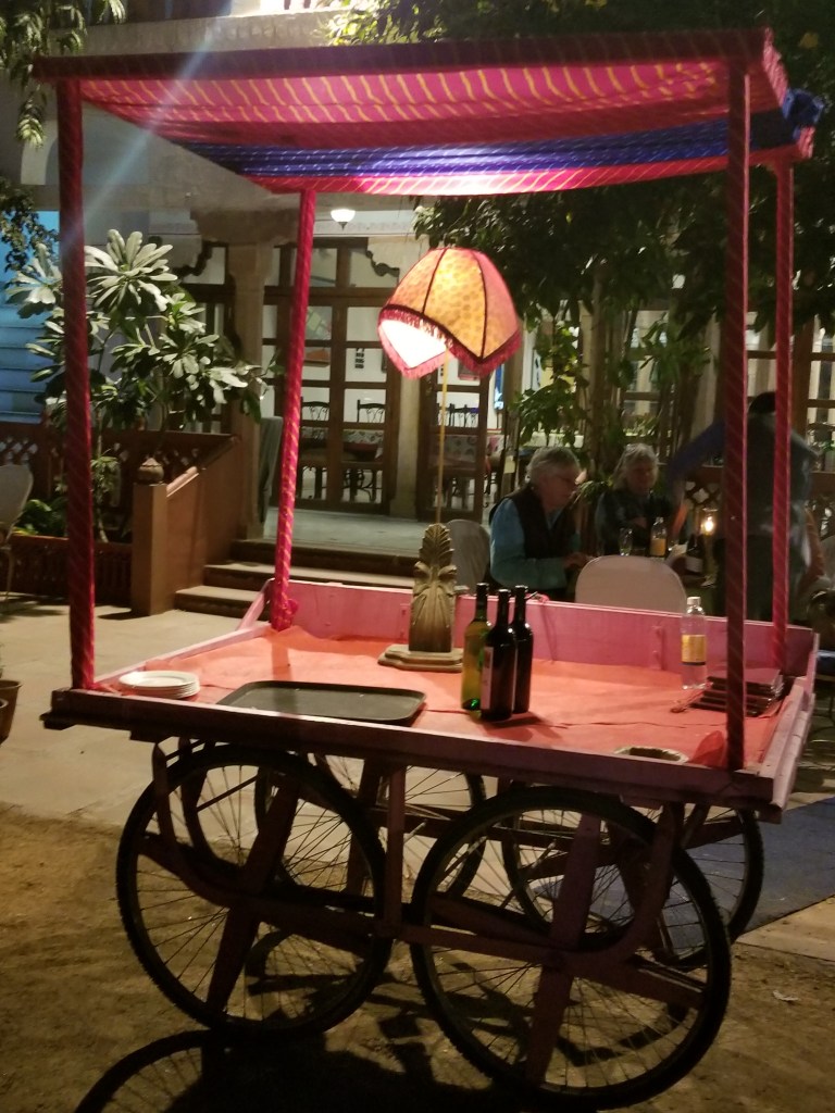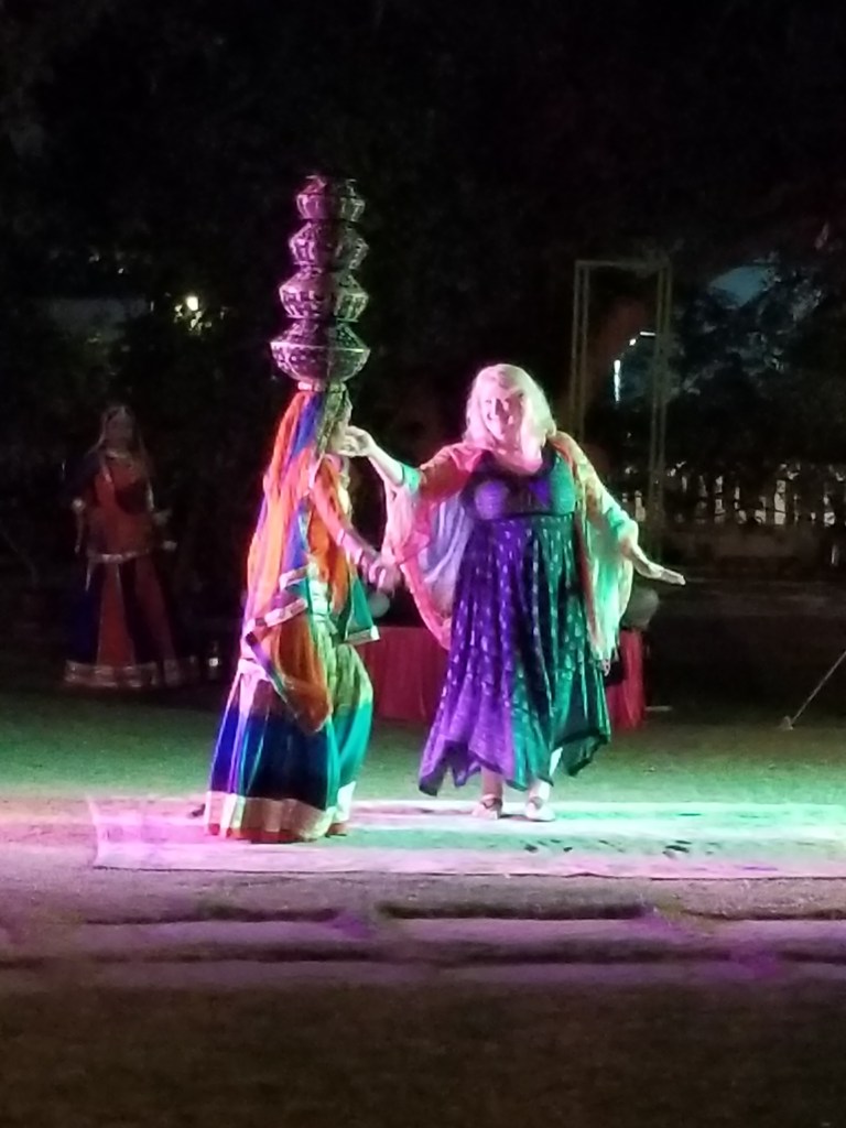 For dinner we were the guests of the Diggi’s, a local royal family, who have opened their lavish palace to the public as a heritage hotel, creating opportunities for visitors to experience the opulence & elegance of Jaipur in a very special way. We tasted delicious dishes under the stars in the palace’s garden courtyard, watched traditional dances (Natalie & Dave even gave it a try), cultural puppetry & the Maharajah himself was helping at the grill… so personable & charming. What marvelous fun …a delightful evening! Tomorrow – Amber Fort