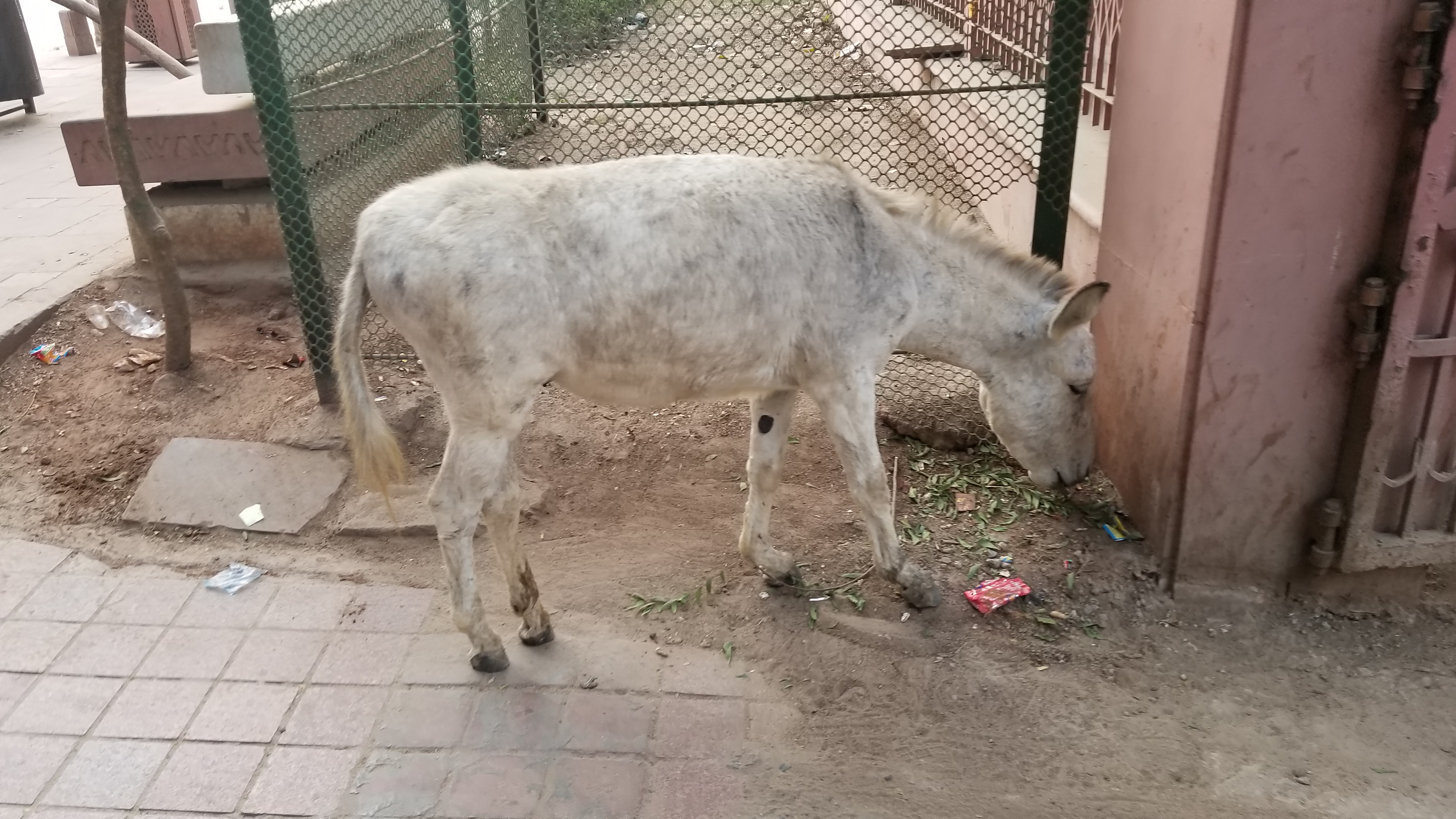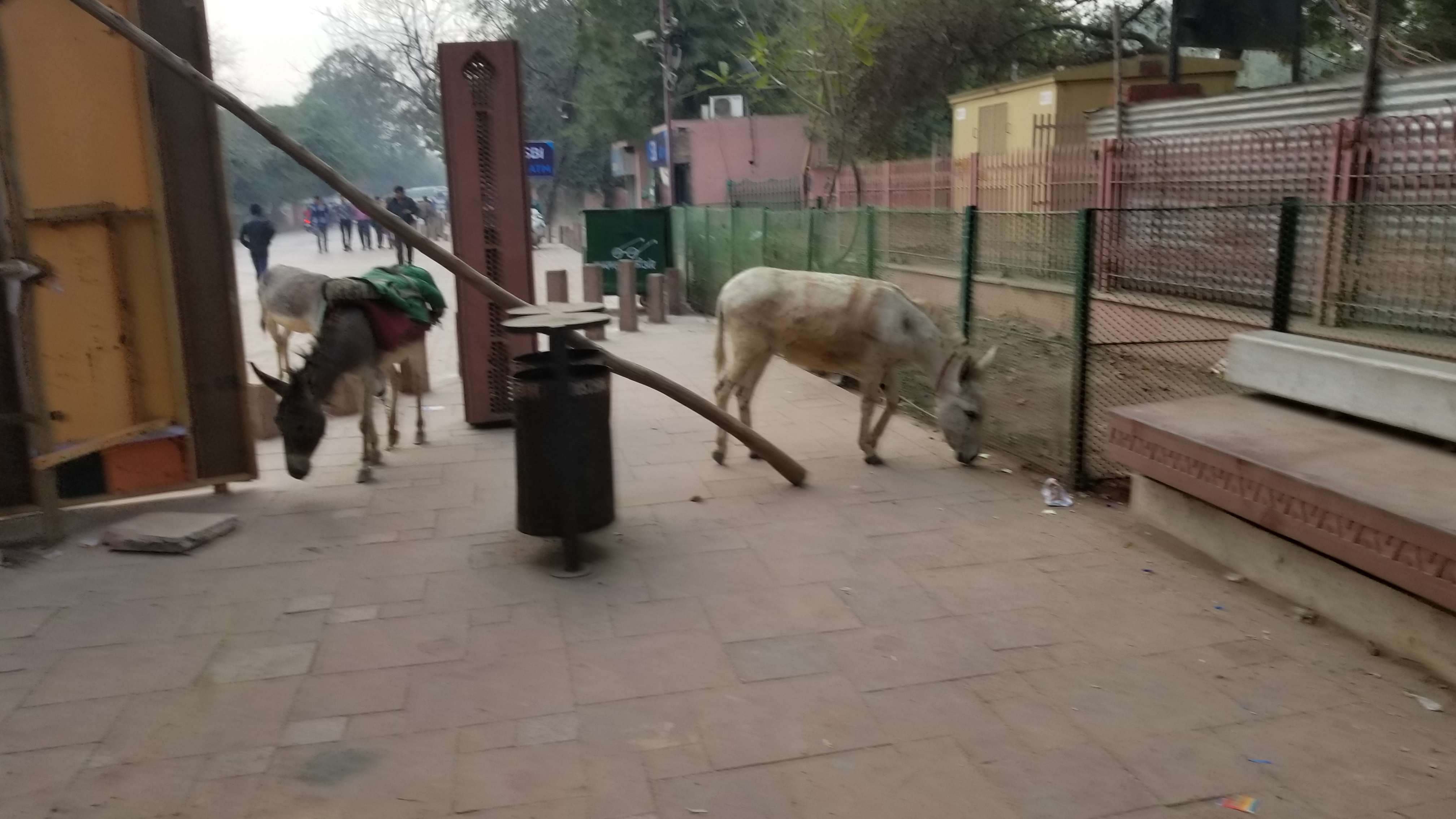 Thanks to our guide’s insistence on a super early start, we were one of the first arrivals at the gate that morning & our only surprise at the security checkpoint were a couple of random donkeys milling around. One woman in our group was detained due to bringing a large bag (expressly warned not to) but again, Kapil’s experience was key to getting this woman’s situation resolved amicably (she was able to join us later). Following our security screening, we were “greeted” by a couple of armed guards & some playful monkeys running along the roof line. There were plenty of other monkeys “monkeying around” … later we saw a group who had the run of the garden section closest to the Mosque. (Check out the video attached at the end of the post.)