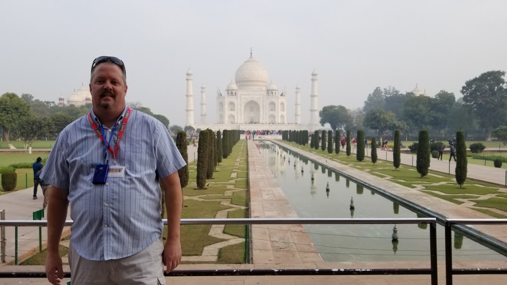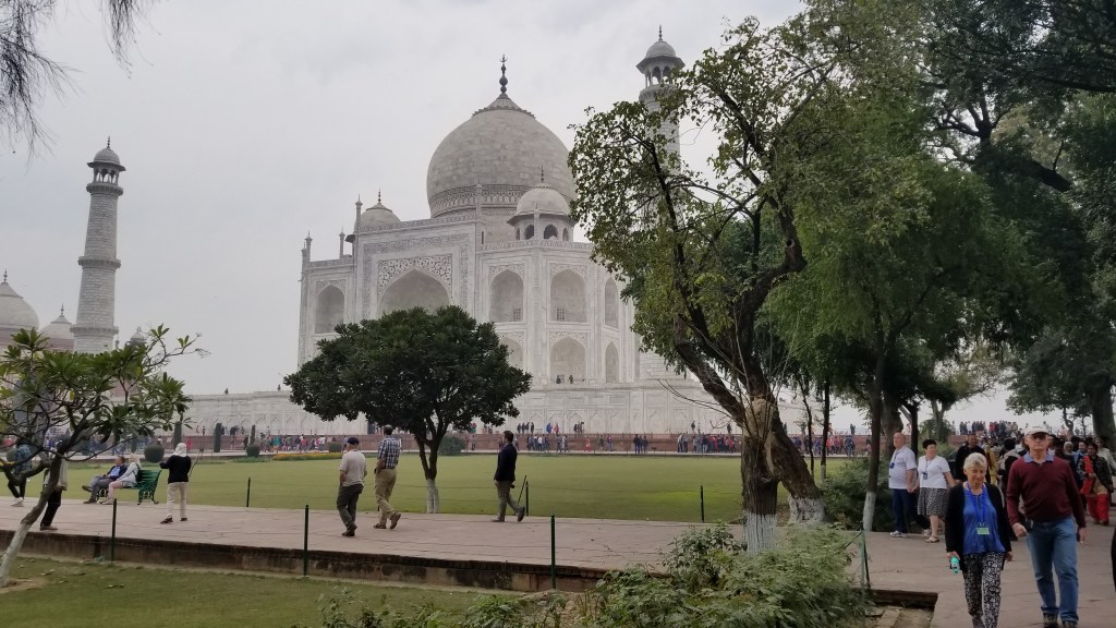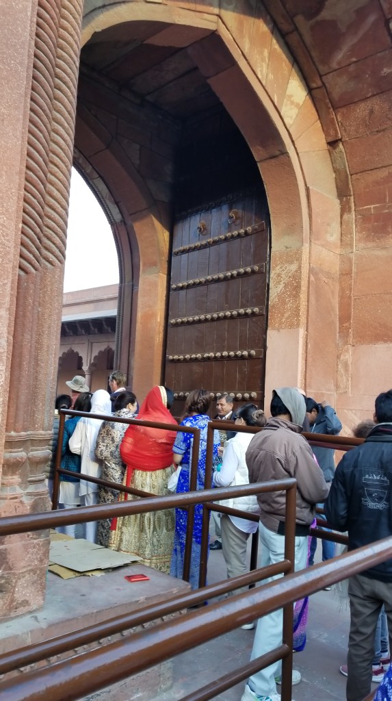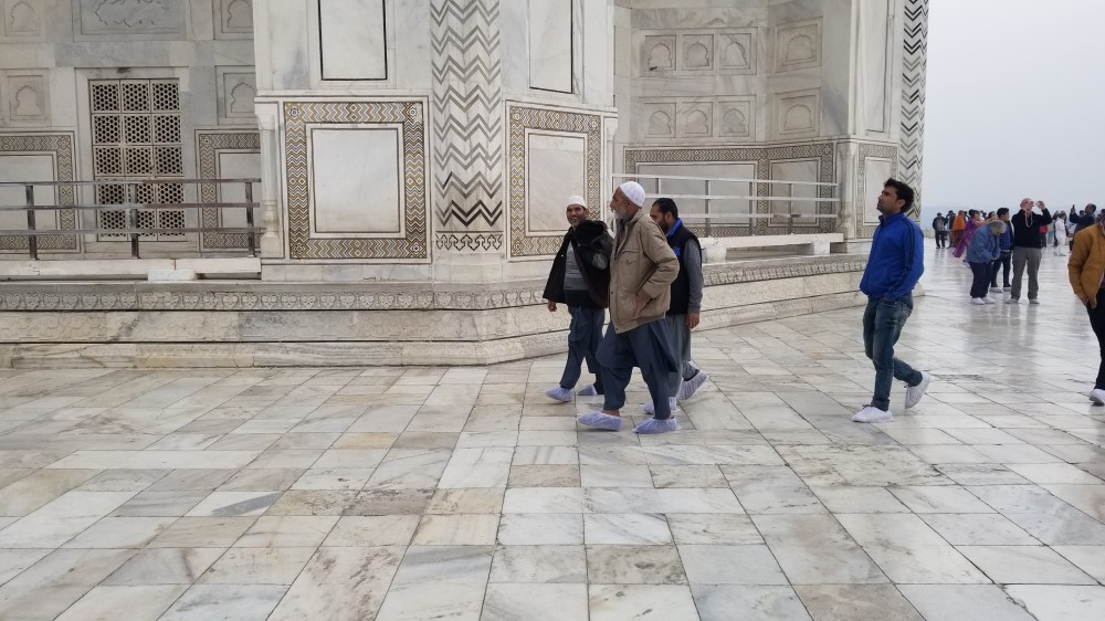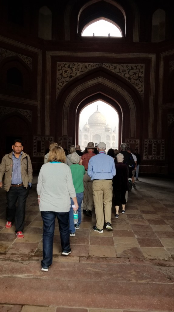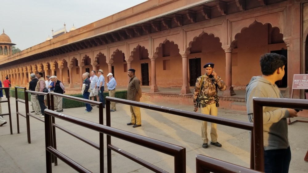 For several days Kapil had been prepping our group for the upcoming strict security process at the Taj, providing specific instructions what to do/not to do/bring/not to bring to successfully pass thru the gate checkpoint. When the big day finally arrived, he wasn’t his usual light hearted self. Both he & our driver seemed off, anxious… and, for good reason. We’d learned the night before that a police search of the bus was a possibility. Sure enough, our bus was stopped a half block short of the Taj gate. After an intense discussion between the officials, Samir & our driver, the police entered our bus. Luckily we were allowed to exit the bus at that point, avoiding a full search. We continued on foot the rest of the way to the entrance. It was a bit tense, but in the end I was grateful knowing if we had been carefully watched, certainly others were as well who actually may intend harm.