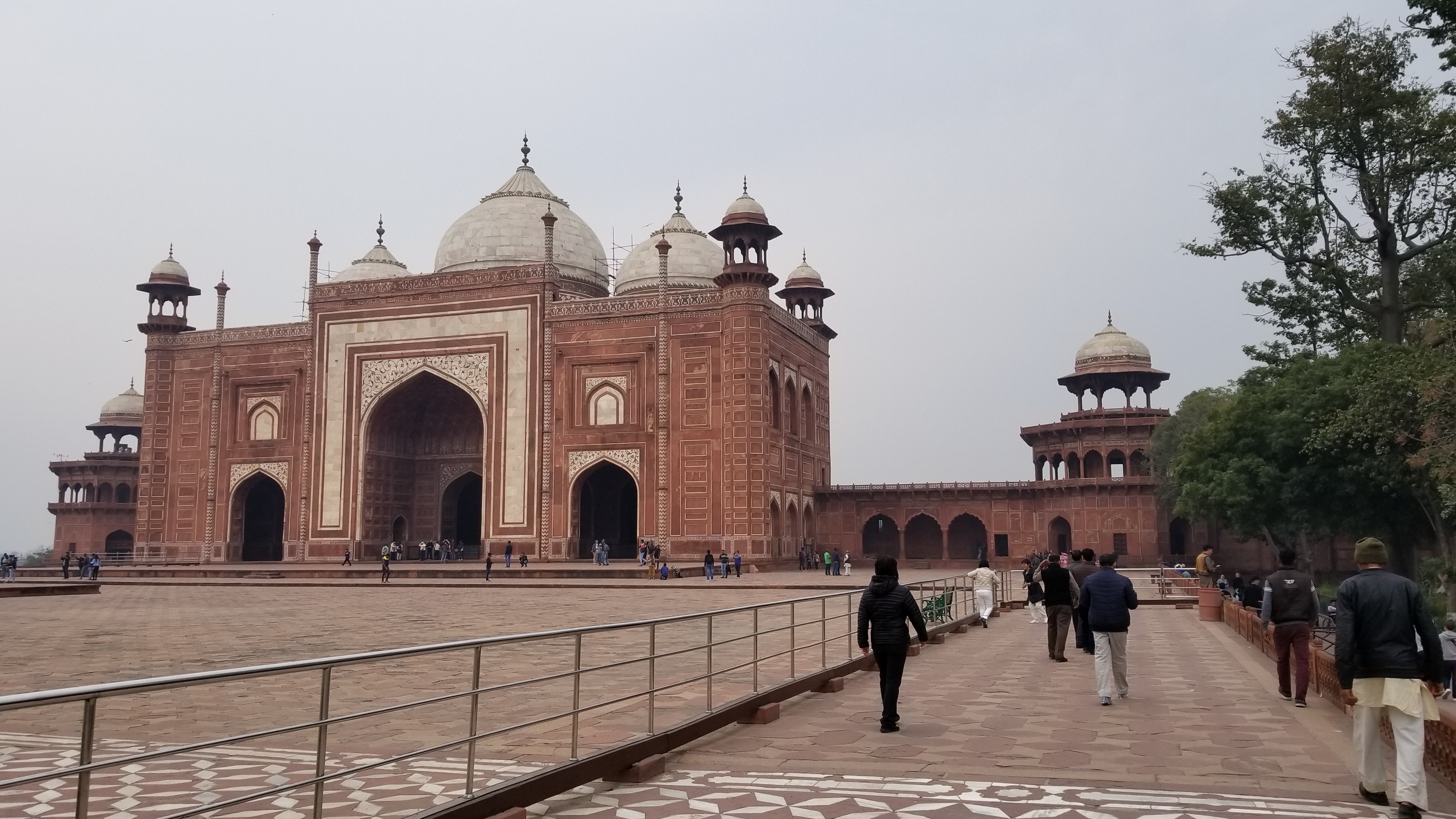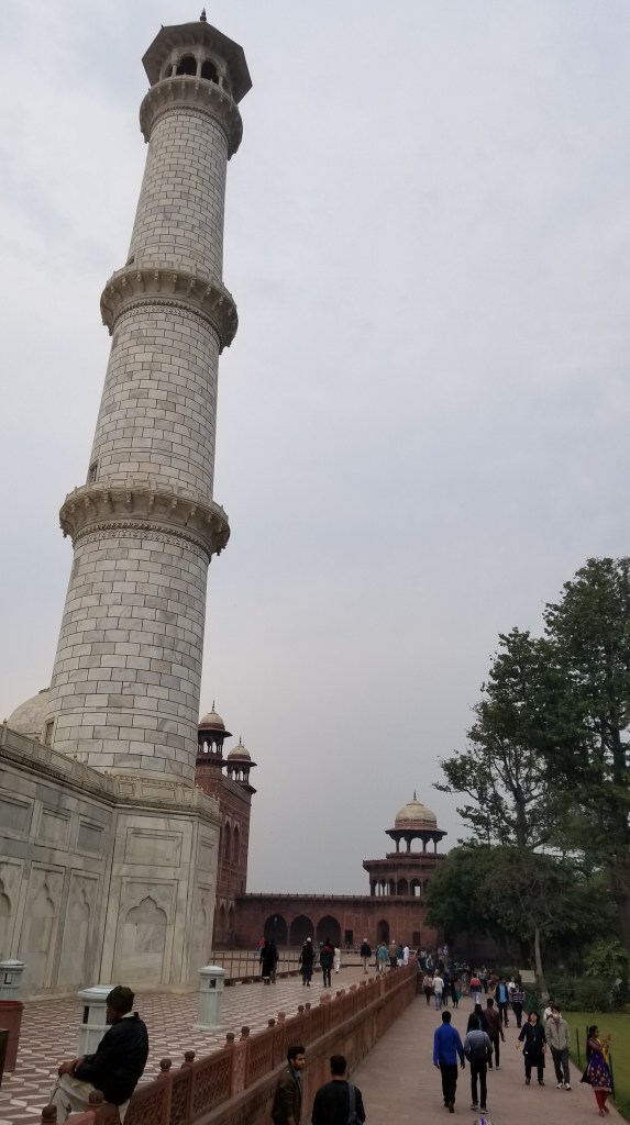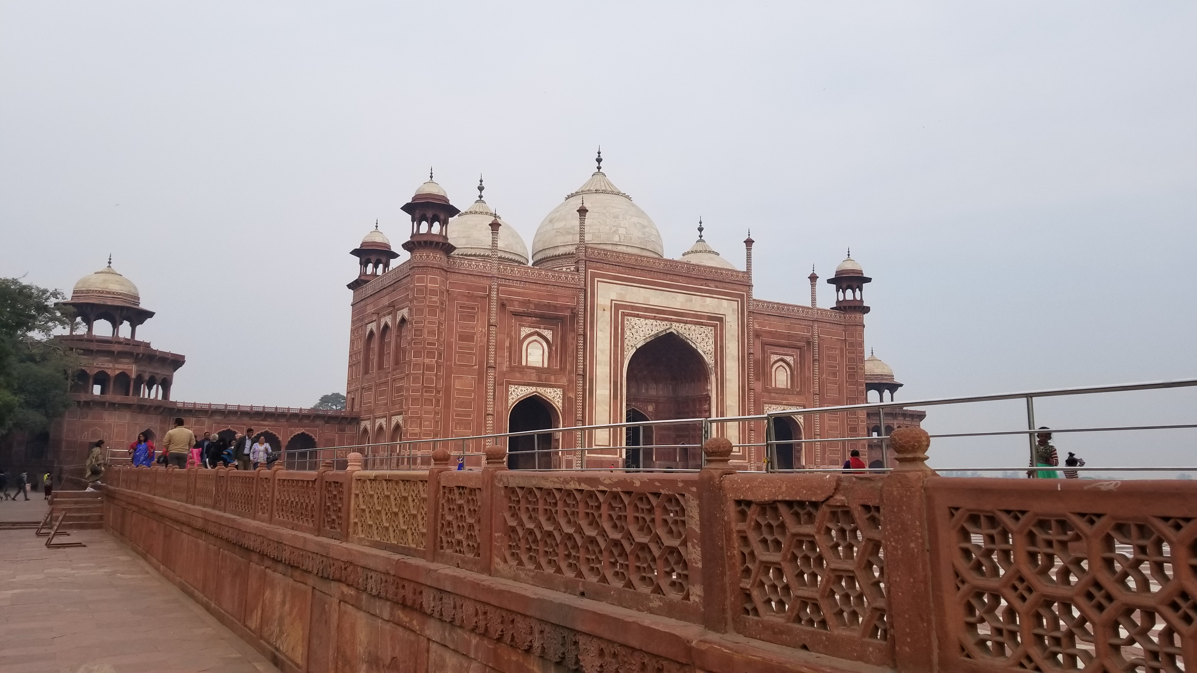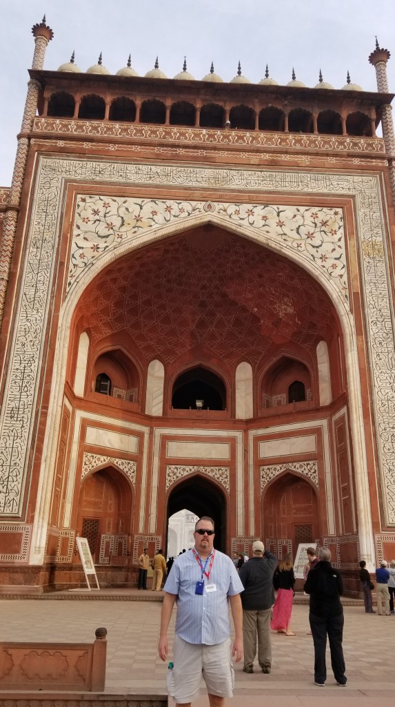 Whenever visiting somewhere I’ve heard or read about, I’m always tickled how every time something surprises me… that there are unexpected moments … things that make me go hmmm??! At the Taj it was learning that the white marble crown jewel is flanked by two gorgeous & grand RED stone buildings! These outlying buildings, The Mosque & The Guest House also lay along the banks of the Yamuna River & provided great additional photo ops for the Jewel of India as well as back to the Main Gateway.