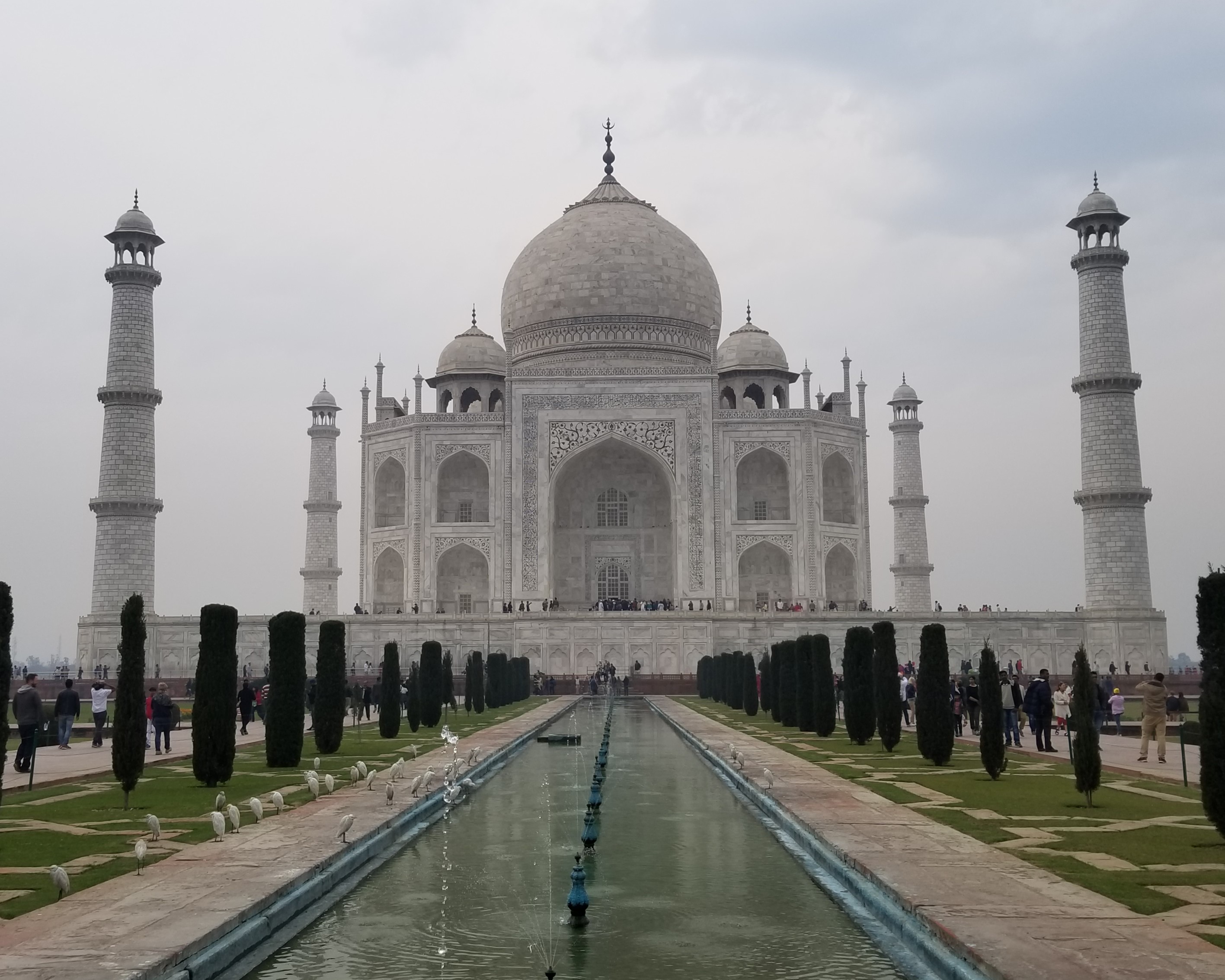 Inside the mausoleum sit 2 crypts (the actual remains are one floor below, Muslim law requires a simple grave), one for the Mughal emperor Shah Jahan & one for his beloved wife. The Taj Mahal is a monument of love built by a grieving husband to honor his favorite wife who died giving birth to their 14th child. The elaborate obsessive construction that took 20,000 craftsman & 22 years to complete consumed the 17th century wealthy kingdom’s fortune, enough so that the son of the emperor seized the throne from his father for ruining the family treasury. Across the river from the Taj we visited the Red Fort where the sad family drama played out & Shah Jahan, as a prisoner, gazed upon the completed tribute to his queen until the end of his days.
