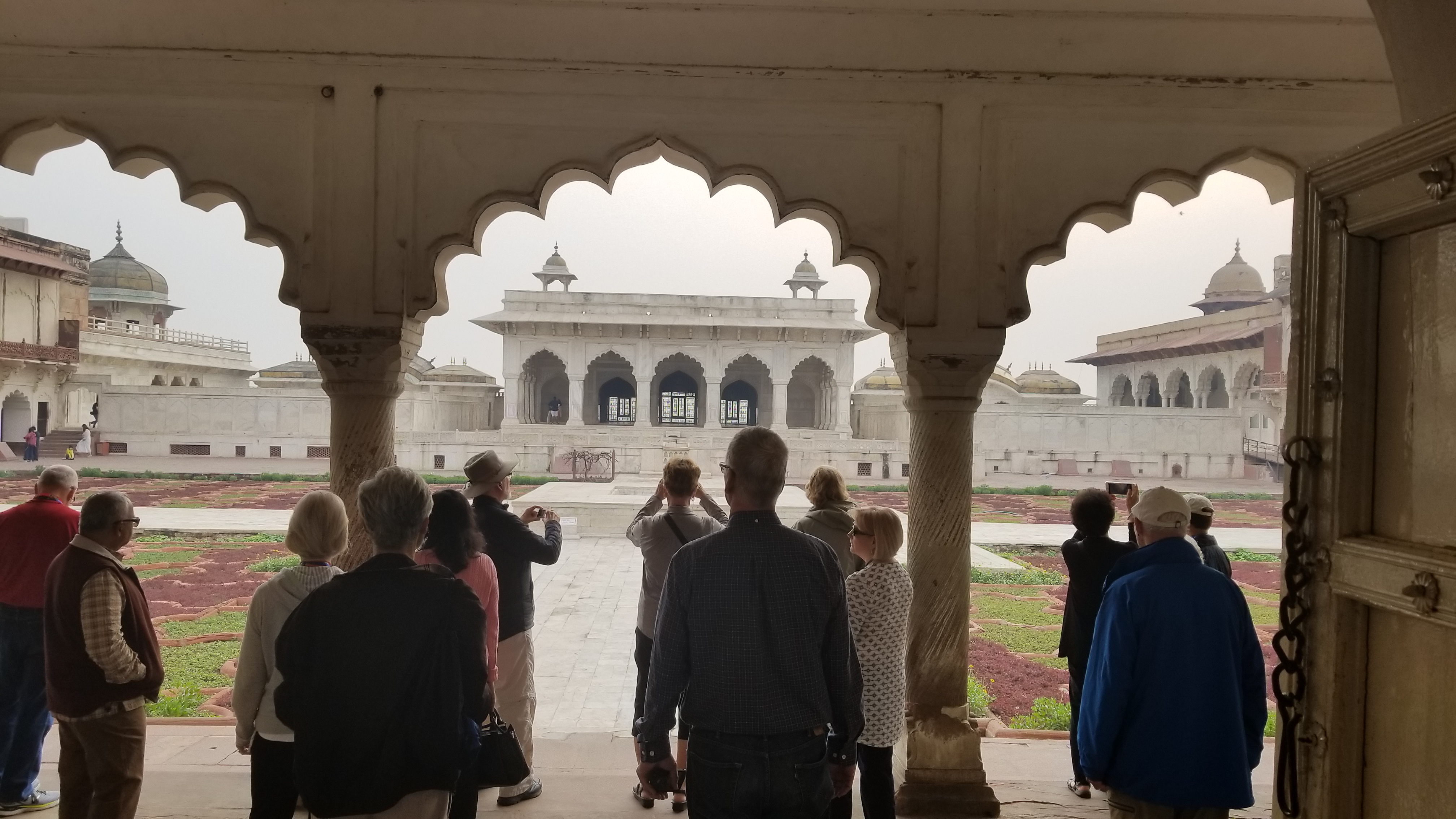 For several days Samir had been prepping our group for the upcoming strict security process at the Taj, providing specific instructions what to do/not to do/bring/not to bring to successfully pass thru the gate checkpoint. When the big day finally arrived, he wasn’t his usual light hearted self. Both he & our driver seemed off, anxious… and, for good reason. We’d learned the night before that a police search of the bus was a possibility. Sure enough, our bus was stopped a half block short of the Taj gate. After an intense discussion between the officials, Samir & our driver, the police entered our bus. Luckily we were allowed to exit the bus at that point, avoiding a full search. We continued on foot the rest of the way to the entrance. It was a bit tense, but in the end I was grateful knowing if we had been carefully watched, certainly others were as well who actually may intend harm.
