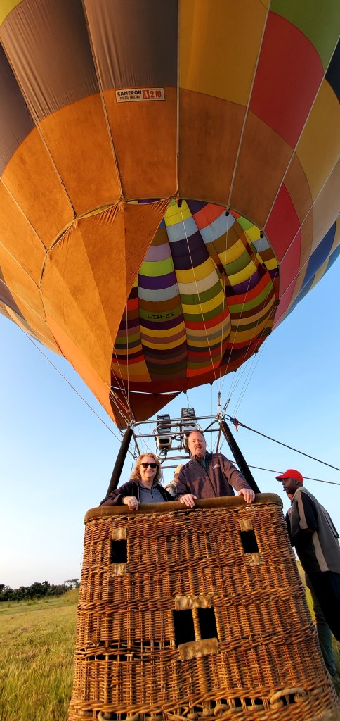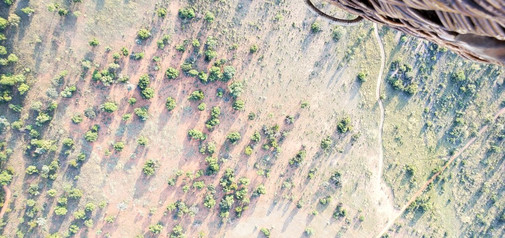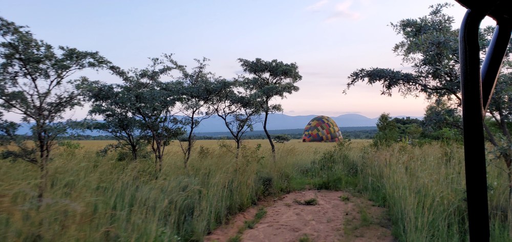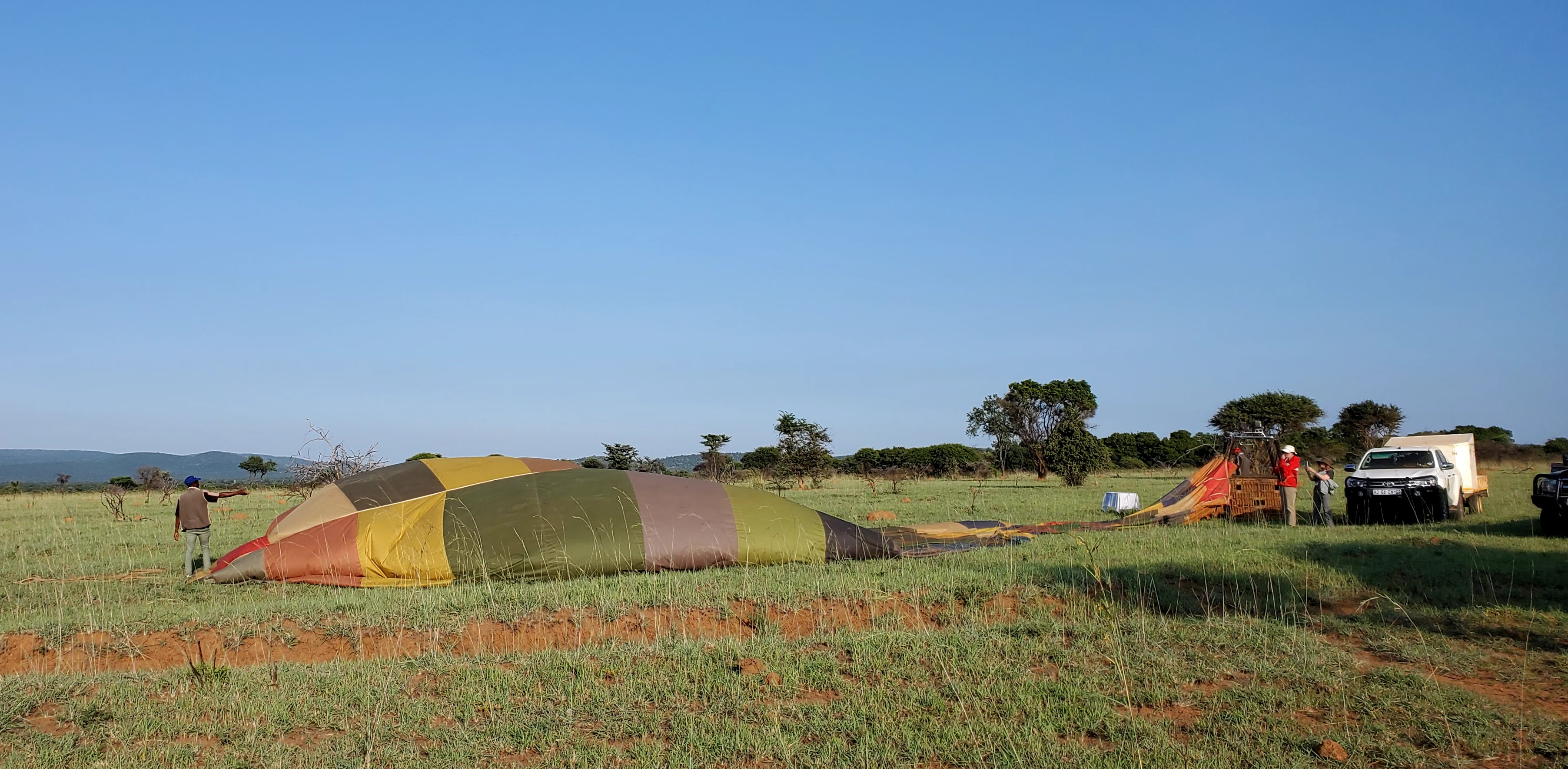 It took all he had to pull the line & attempt to manage pulling the monstrous balloon to the side with the goal to bring it down avoiding the thorns. It was quite a show and, in the end, I think Dave was secretly hoping for a job offer in South African ballooning as Captain Mark’s newest pilot intern!