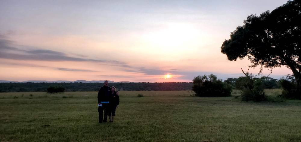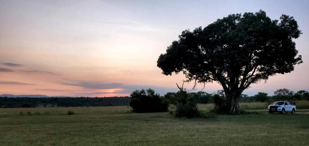 Reporting at 5 a.m. for transport without a solid confirmation that the flight was on is a true act of sleepy faith & vacay hope at its best! We climbed aboard a Land Cruiser with Mary and, after a significant commute over dirt roads, we arrived at the designated rendezvous point, a large picturesque clearing by the most lush huge fig tree I think I’ll ever see.