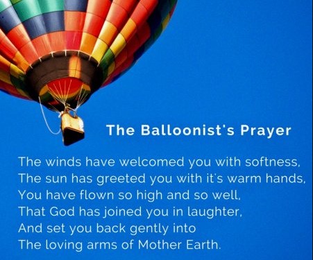 Captain Mark also shared the beautiful Balloonist’s Prayer. Yes the loving arms of Mother Earth had welcomed us back!