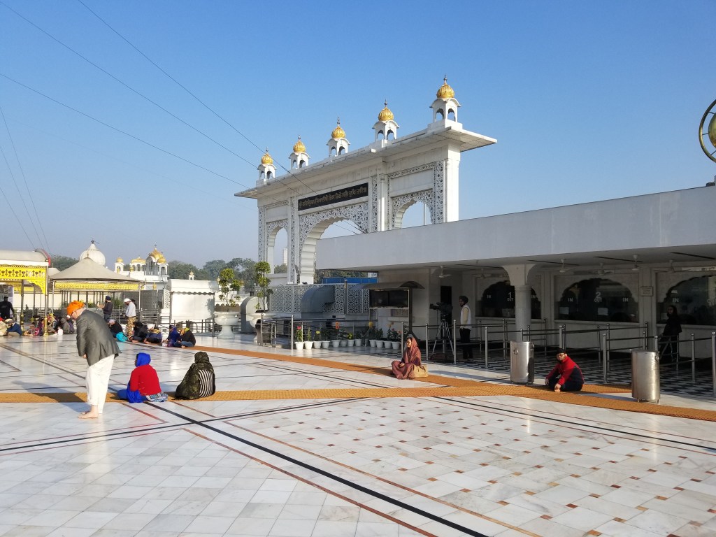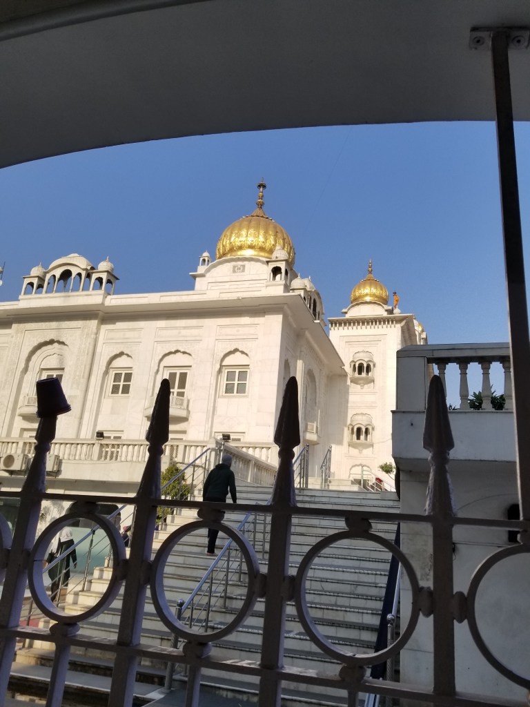 Outside we found the long white steps leading to the expansive pool of water on the far side of the courtyard filling the wide white space from the back side of the large angular temple building to the front street side of the courtyard. Early in the morning the space is calm, empty and serene… not a better ending could be had for our deeply moving exceptional morning at Sri Bangla Sahib Gurudwara.